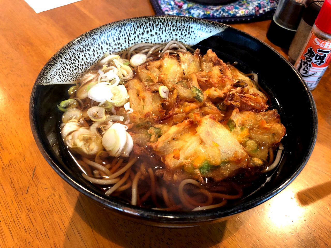大きなかき揚げはやや崩れ気味であるが、どのみち食べるには崩さざるを得ないので(そのまま噛り付くというテも無くはないが…)理にかなっているといえる。