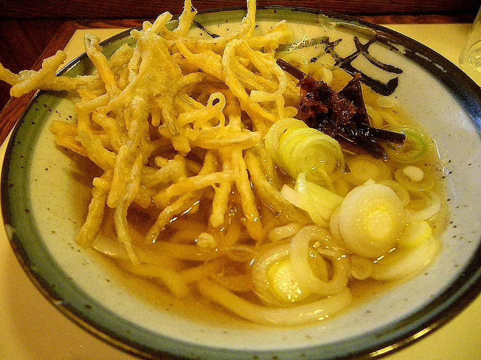 私を虜にさせた自家製の麺、それから、つゆを糊にして麺と絡み合う天かす、甘みの詰まった揚げ。