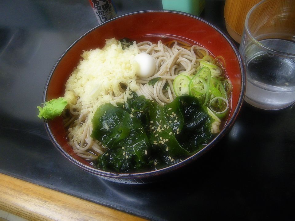 麺はややバサバサとしていて喉に突っかかる感じ。目にも鮮やかな黄緑の練りワサビも素敵(笑)