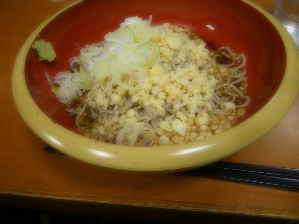 今日は冷したぬき。昔は横浜線沿線の某店(チューリップ祭りの学校の最寄駅)でこれの饂飩ばかり食べていた。