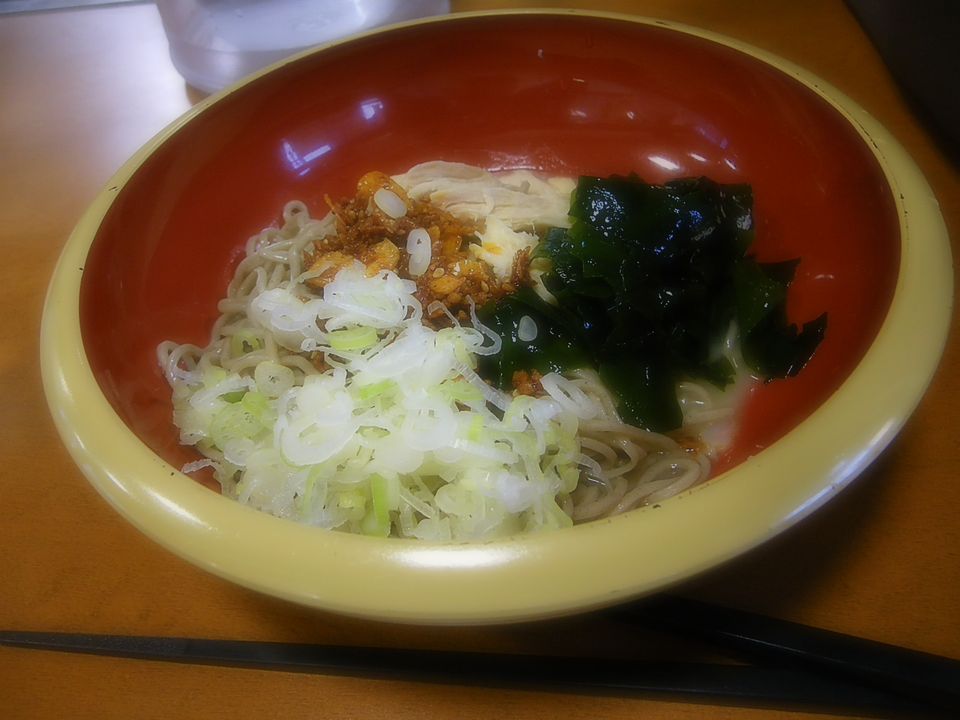 今回食したのはあじさい系列共通の夏季限定メニュー「帰ってきたそば屋のラー油そば」。