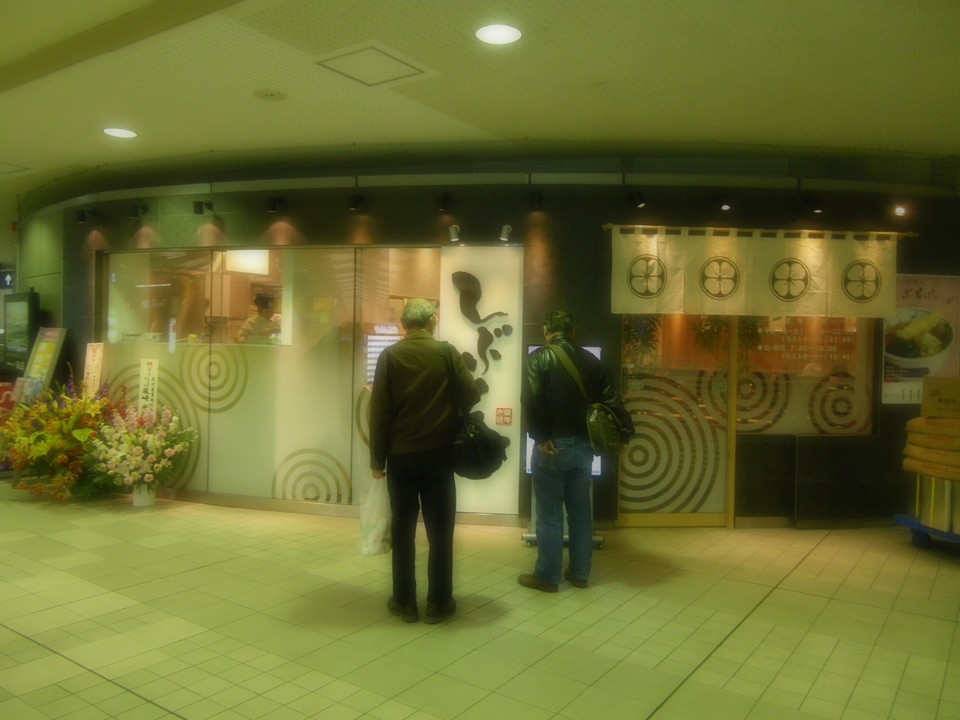 店舗外観。改札を入って正面が店となる。写真に写っている方々が見入っているのは↓の液晶ディスプレイ。