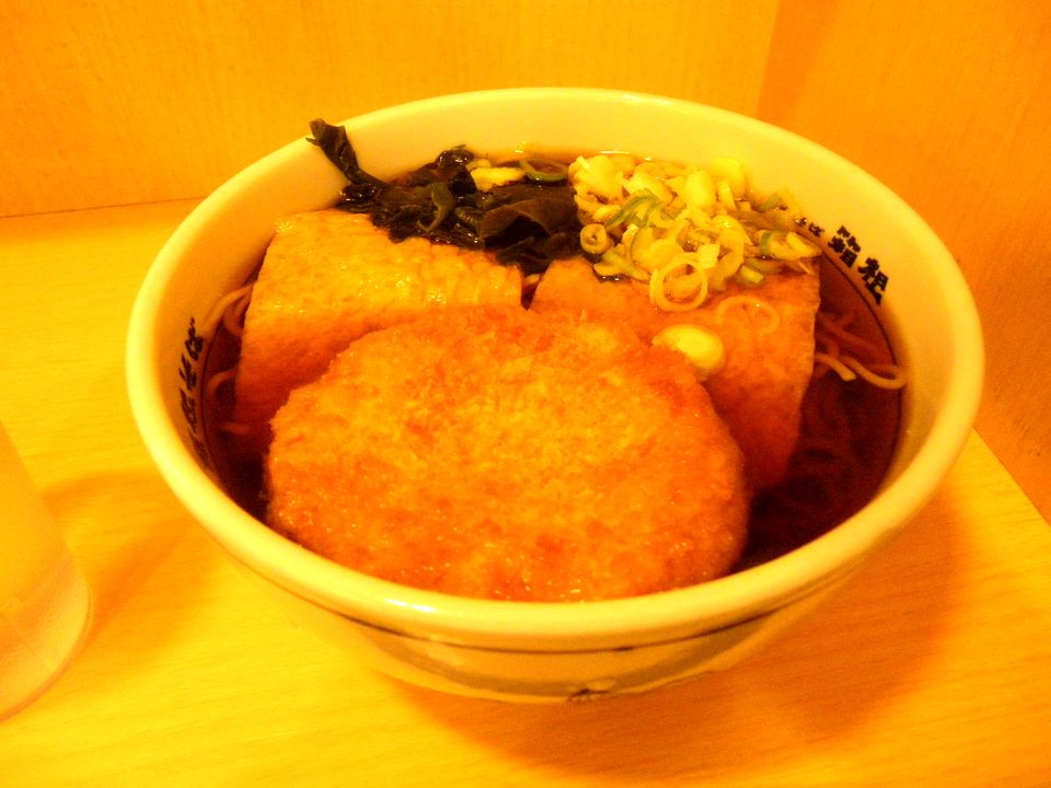 某所でコロッケ入りきつねそばってのが話題になっていたので・・・クーポン券を貰ったついでに試してみてしまった。