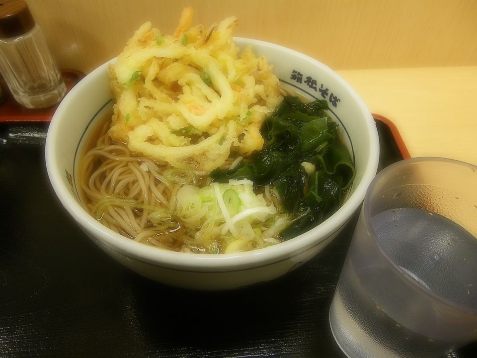 箱そばらしくない、ちょっと懐かしい歌謡曲が有線で流れる店内に違和感を感じつつも、ユーミンを効きながらの天そばもコレはコレでいいかも知れない。なんて思いながらつゆを飲み干した。