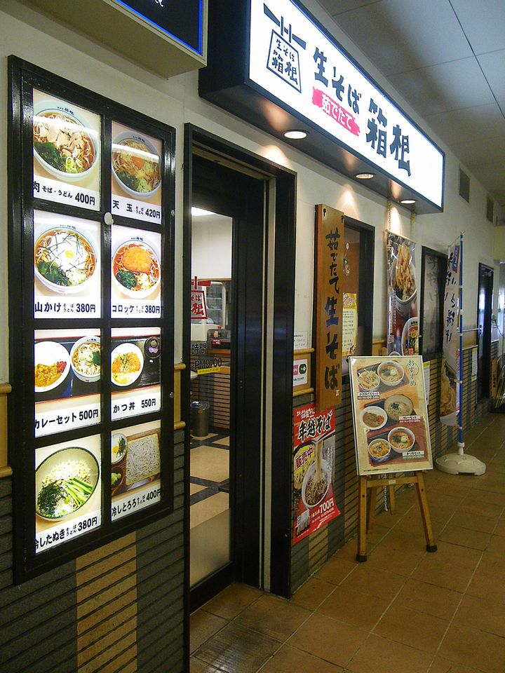 南林間の箱そばは、橋上駅舎の改札を出た正面。小田急には、そして箱そばには、実にありふれたスタイルである。