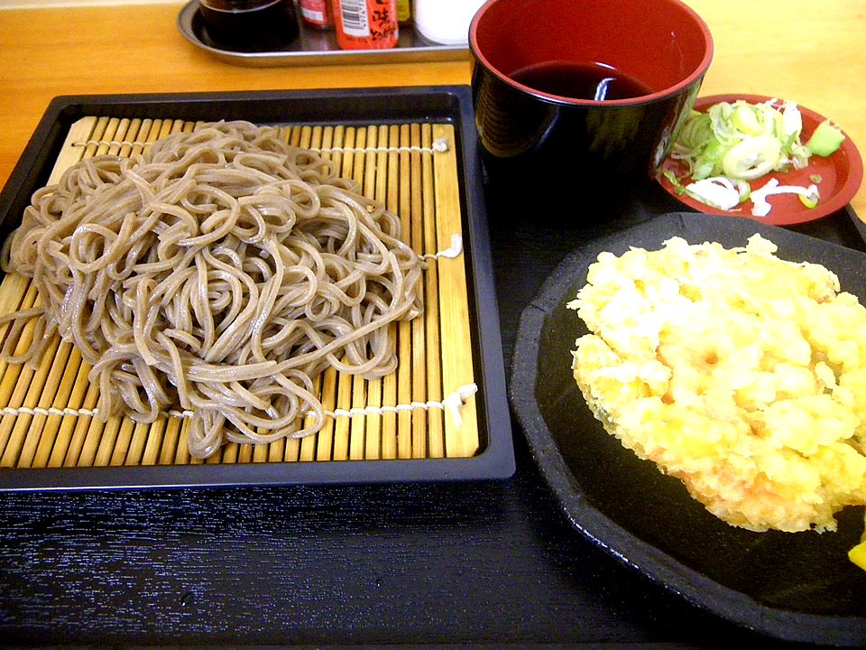 もりそば(360円)+甘えびのかき揚げ(130円)