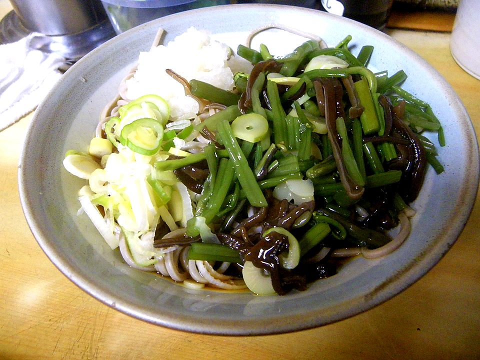 普通、山菜そばを頼んだところで、きのこやら、おろしやら、天かすと、頼んでもいない他の具材ばかりが目立つ事も多いが、ここはと言えば随分な山菜の量である。こういうのはなかなか無い。