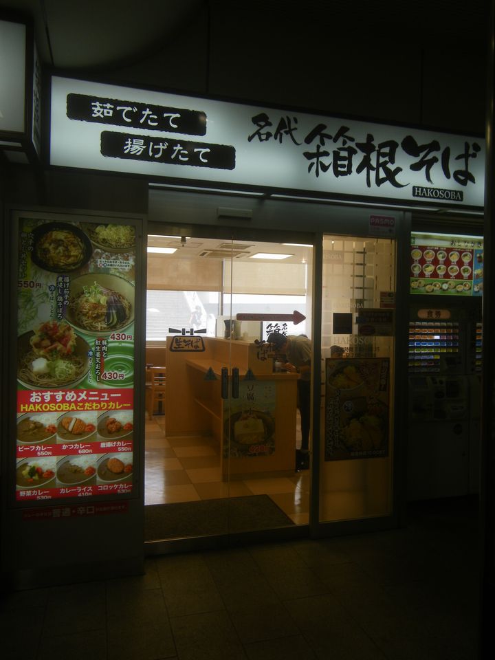 登戸といえば、川崎最北の都市である。遊園や生田の山と多摩川、二ヶ領用水に挟まれた手狭な駅前を現すように、小田急線ホームへの階段と改札に挟まれた少々薄暗い場所に・・・ここにもやはり、箱根そばがある。