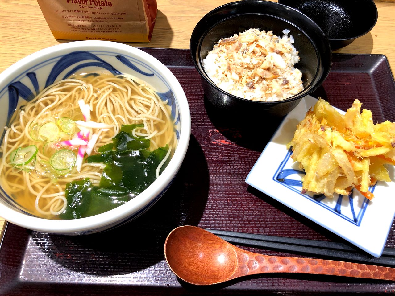 かき揚げそば(580円)+名物あじ御飯(300円)