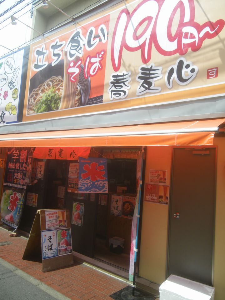 今時にしては珍しい完全立ち食いのカウンターのみ。かけそばは190円、さらに学割で大盛りか玉子がサービスになるなど、数多くの店が並ぶ商店街のなかで必死の姿勢である。