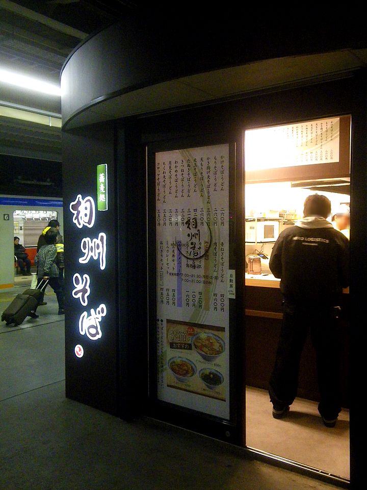 25年1月29日オープン、相鉄線海老名駅ホームの相州そば。何を隠そう、ここはかつて「海老名そば」のあった場所を改装してオープンしたものだ。店のつくり自体はかつての面影を大きく残しており、実に懐かしいが、しかし改装されている分、清潔感ではかなりの差がある。