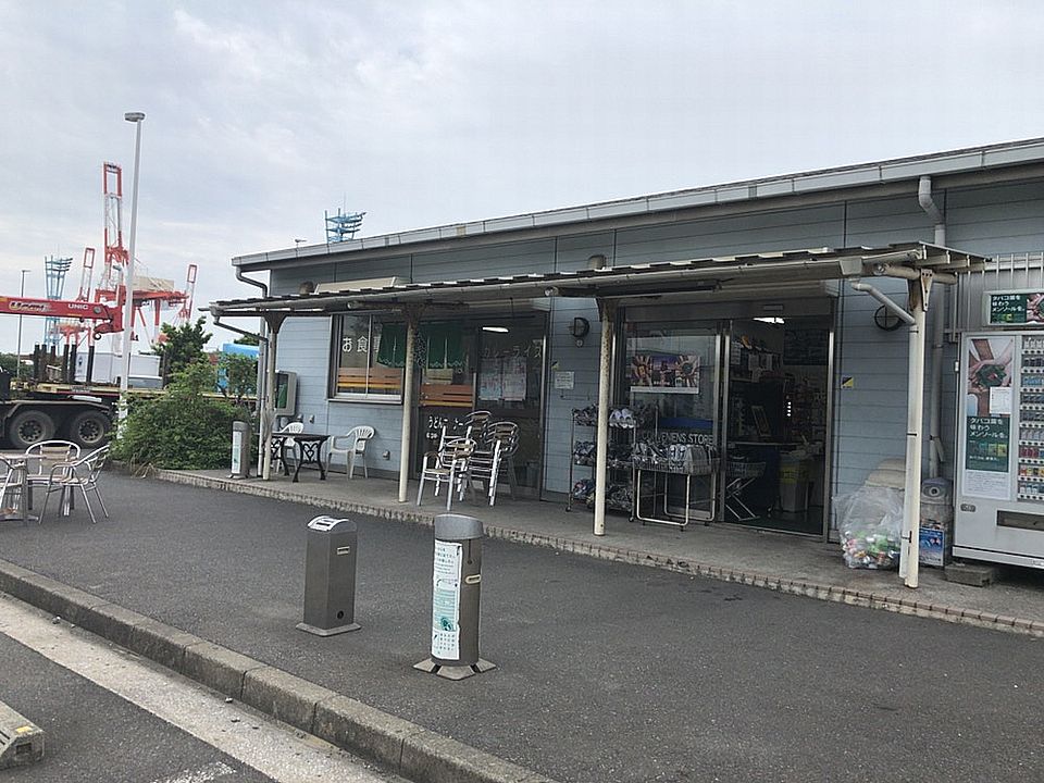 「うまい ラーメンショップ」と「そば うどん おにぎり」の看板が並ぶ店舗はたつみやの目印。瀬谷柏尾道路沿い、バス停「岡津」前。
