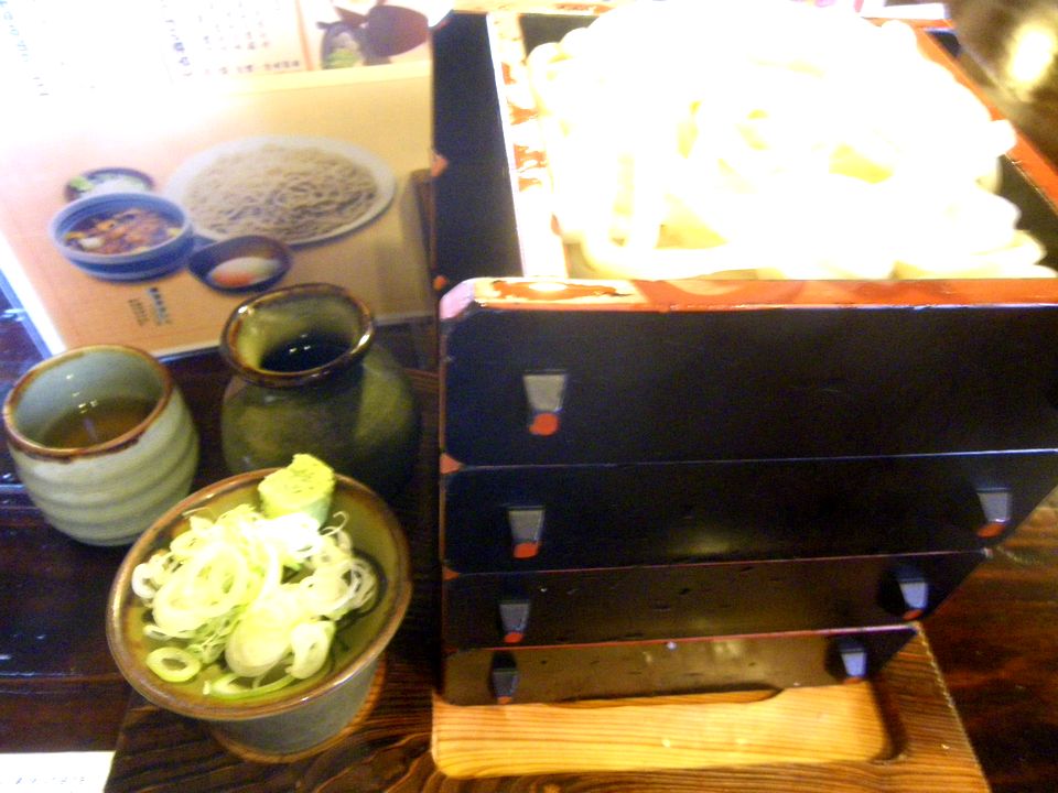 驚いた事に、最近の人は(同期なのだが)麺を啜れない人が居るとは・・・。外人かヨ!!っていうツッコミはさておき・・・ワサビをたっぷり溶かした汁にどっぷりと大量の蕎麦を突っ込み、箸で口に運び込む(そしてドボドボと蕎麦湯をなみなみ注いで満足している)友人の姿を見て、相変わらず面白い子ねぇと独り呟くのであった。。。(Wrote;H23.7.28)