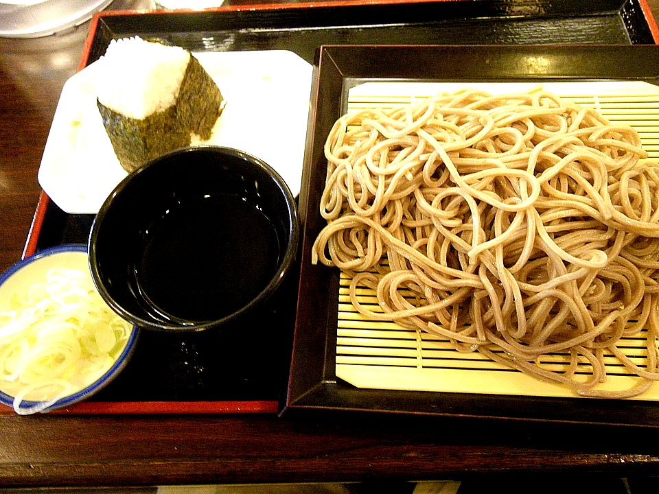 もりそば(290円)+おにぎり<おかか>(100円)