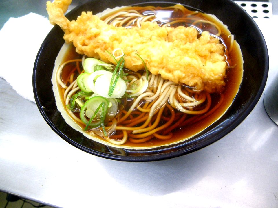 今日は若干趣が違うながらも変わらず濃いつゆ、ズルズルと啜りやすい茹で麺、そしてこの天ぷら、どれを取っても間違いの無い立ち蕎麦の王道だ。